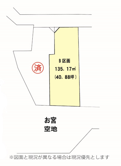 | 土地面積 | B区画 135.17㎡(40.88坪) |